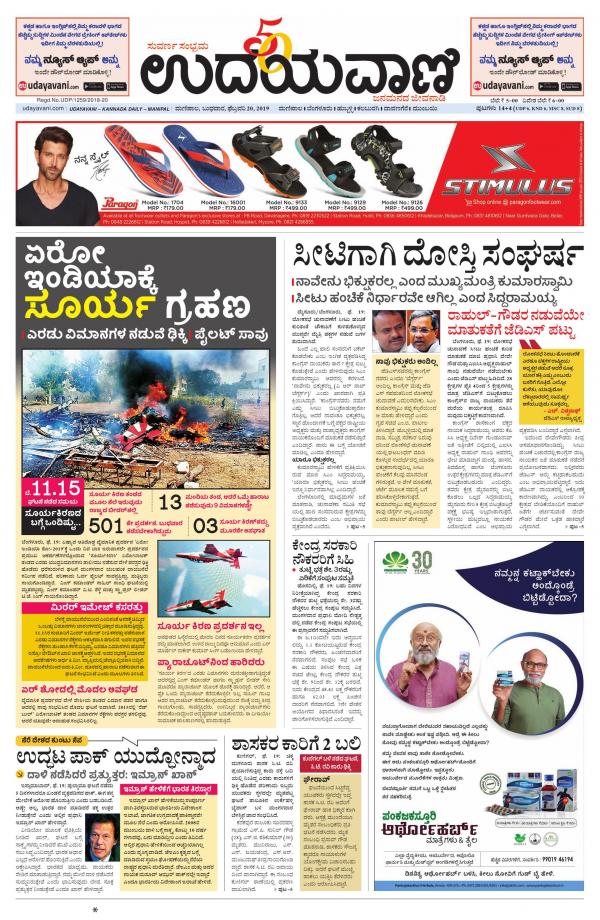 Get Your Digital Copy Of Udayavani Kannada Daily Bangalore June 26 2019 Issue