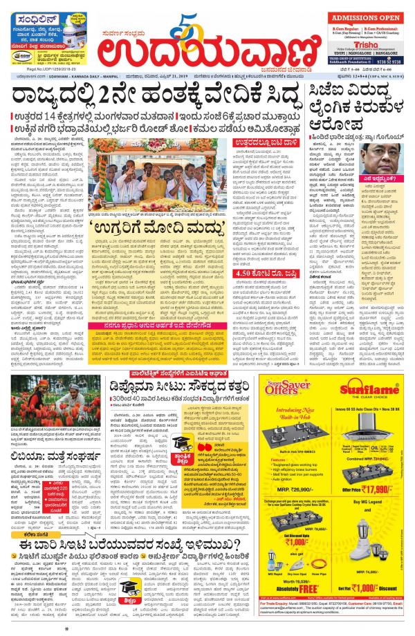 Manipal Edition E Newspaper In Kannada By Udayavani Kannada Daily