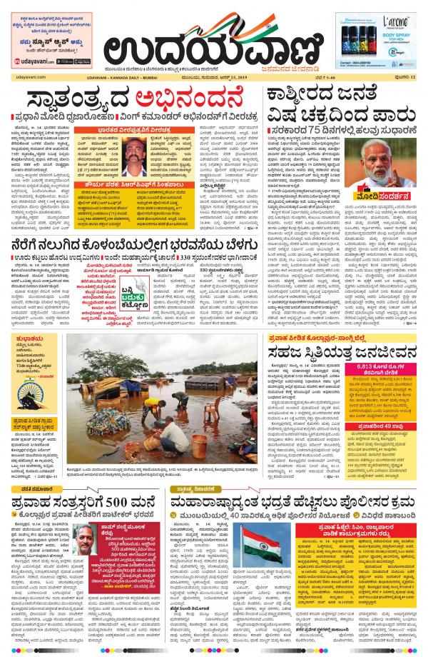 Get Your Digital Copy Of Udayavani Kannada Daily Bangalore August 25 2019 Issue