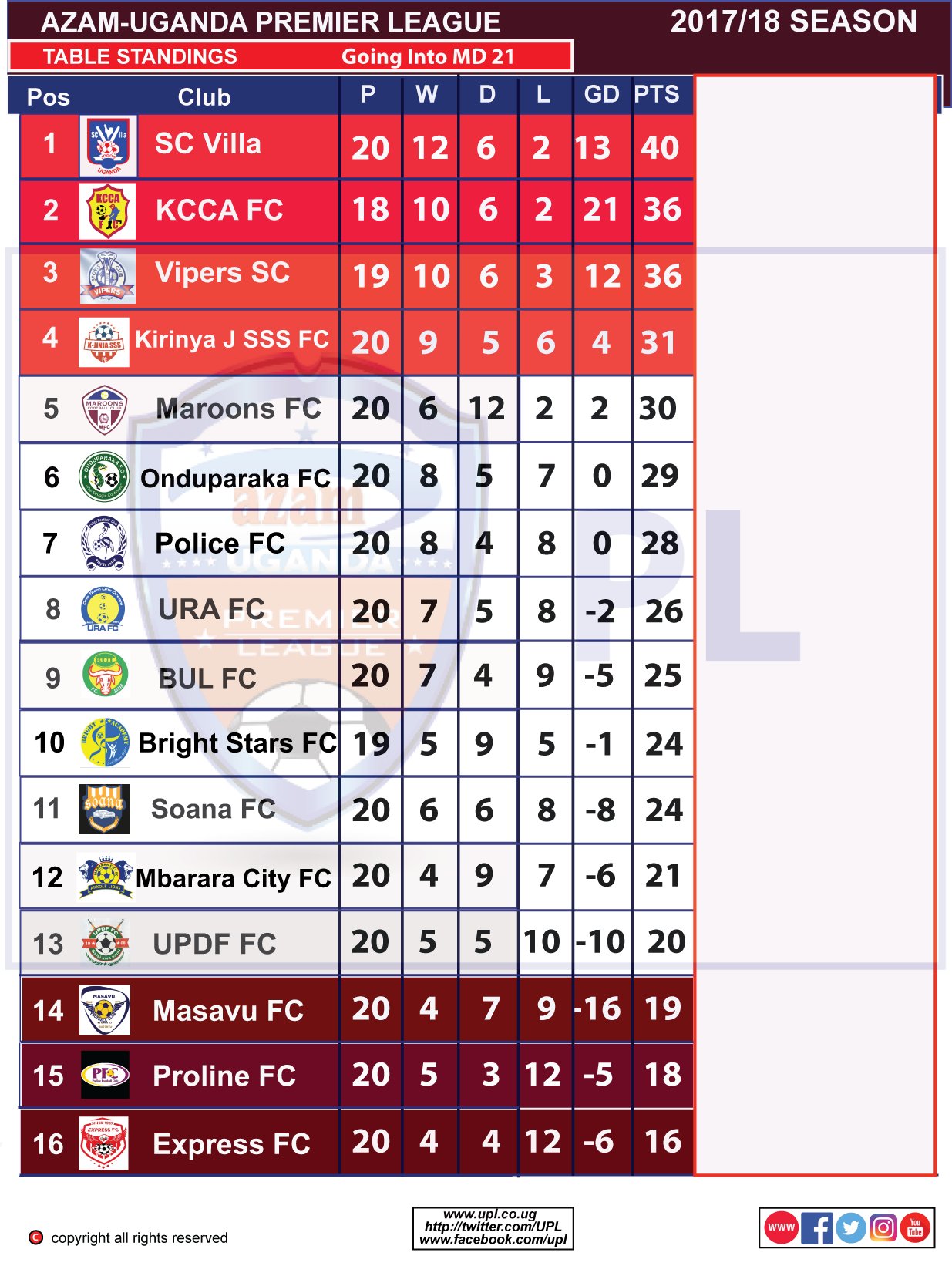 2017 18 Uganda Premier League Table Standings